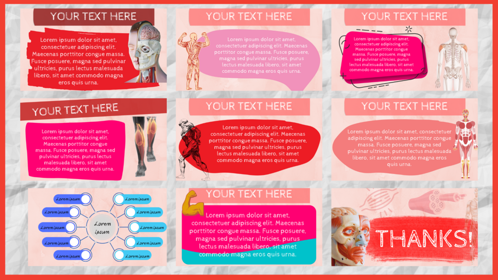 Custom editable PowerPoint Template, Presentation Muscular System Clinical Case.